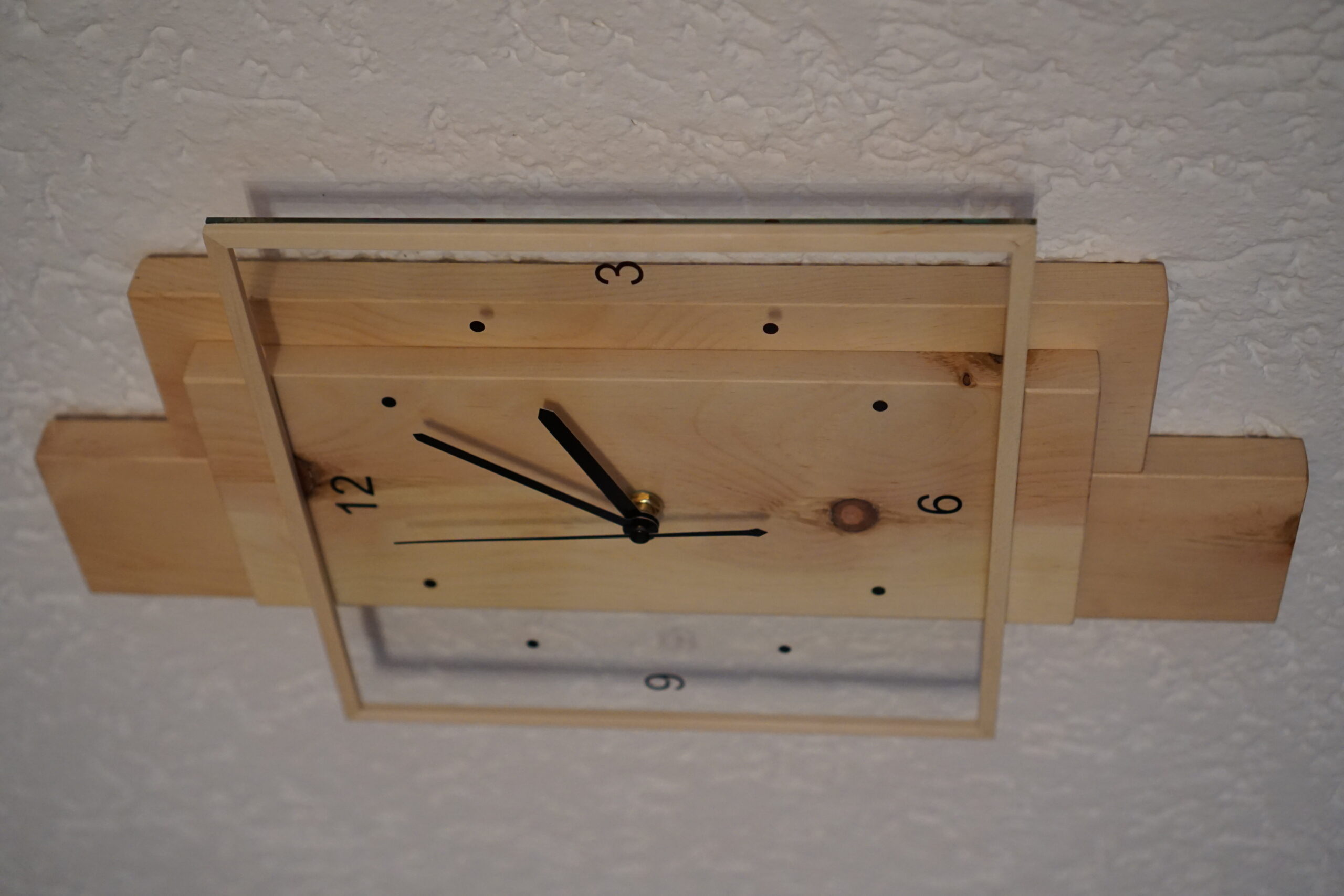 - Ziffernblatt: Floatglas 250 x 250 x 4 mm, Kanten geschliffen und poliert